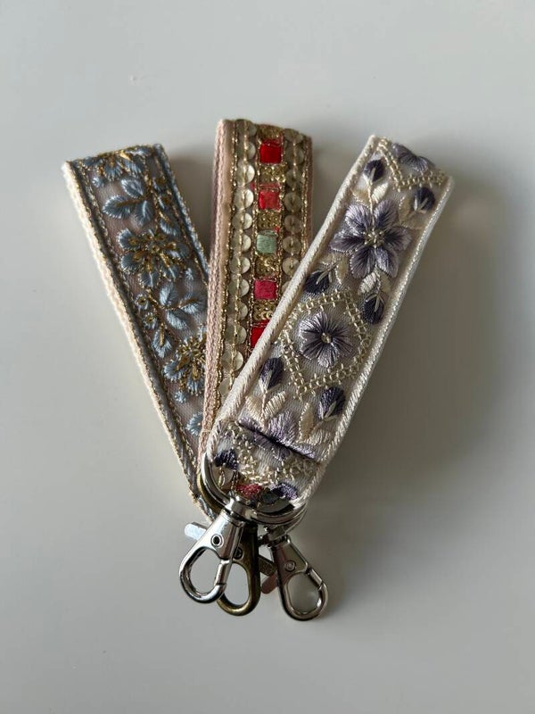Voeg een vleugje elegantie toe aan je sleutelbos met deze luxe sleutelhanger met prachtig geborduurd patroon – stijlvol en uniek!