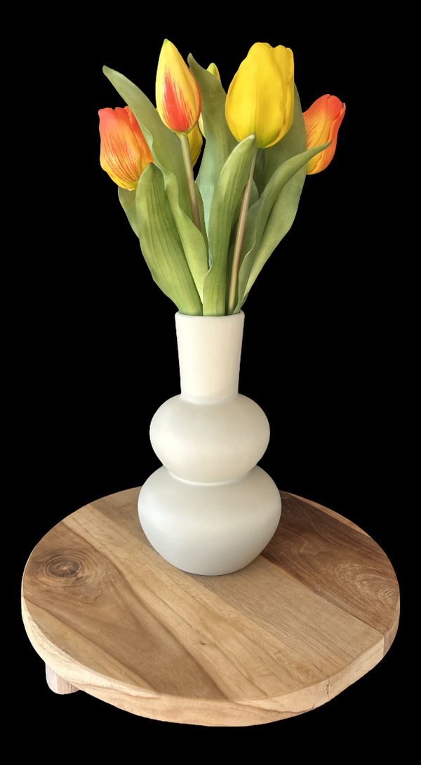 Stijlvolle crèmekleurige vaas met een zachte, siliconen coating aan de buitenkant. Een echte eyecatcher in natuurlijke tinten. Mooi met tulpen of gewoon als decoratie!